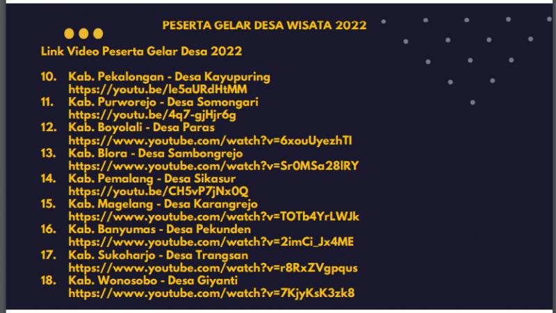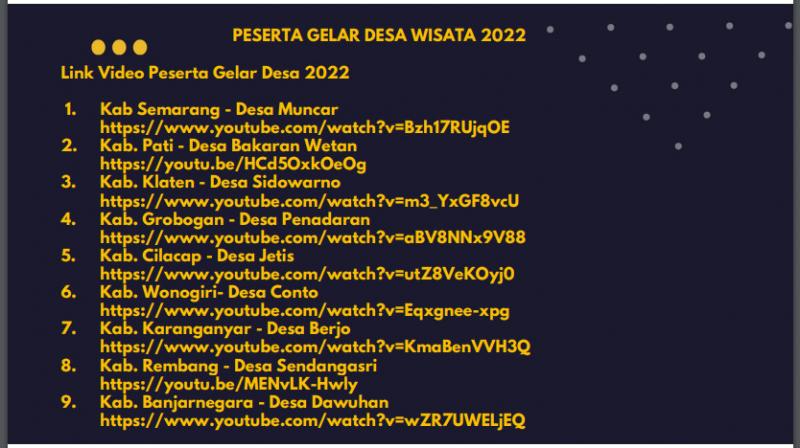 Yuk, dukung terus perwakilan daerahmu dalam ajang Gelar Desa Wisata Jawa Tengah 2022.
