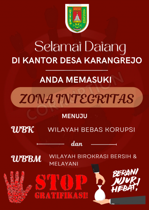 Bak gayung bersambut, Pemerintah Desa Karangrejo sendiri telah berkomitmen untuk menghindari dan menjauhi segala bentuk koropsi. Salah satunya adalah menolak gratifikasi atau pemberian tidak resmi yang diberikan oleh masyarakat saat mereka mendapatkan layanan dari Pemdes Karangrejo.