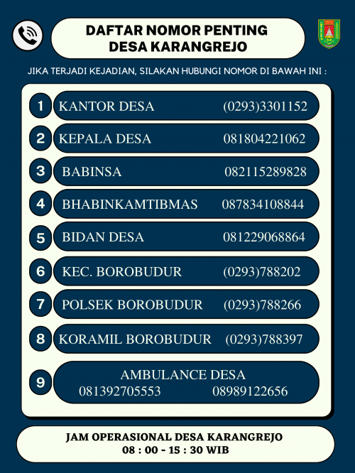 Layanan yang diberikan oleh Pemerintah Desa Karangrejo, Kecamatan Borobudur, Kabupaten Magelang, dapat diakses oleh masyarakat. Pemdes berupaya mengedepankan azas keterbukaan publik. Hal itu membuat masyarakat mampu mendapatkan informasi terkait standar pelayanan yang diberikan perangkat Desa Karangrejo.